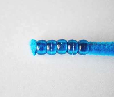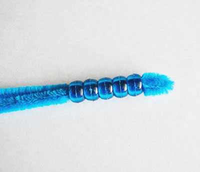 Можно использовать и обычную проволоку, но это будет менее удобно, так как бусинки по ней легко соскальзывают вниз. Ворсинки же синельной проволоки фиксируют их на одном месте.