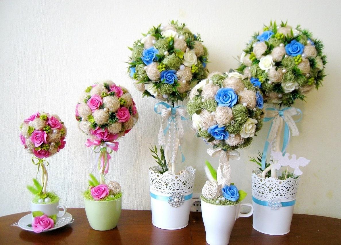 Сознательно или нет, но название немного изменено. Называют такие поделки «топиарий». Последние годы они очень популярны. Секрет прост. Они имеют декоративный вид, служат отличным украшением как для оформления праздника, так и для декорирования интерьера. Самое приятное, что их легко сделать своими руками. Техника изготовления топиария проста, так что даже начинающим будет несложно. Освоить приемы — дело одного, максимум — двух дней. А затем, меняя материал, получаем другой вид, стиль, тематику.