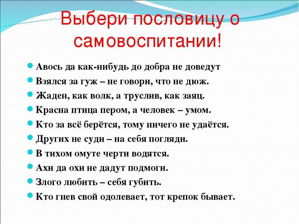 СОВРЕМЕННЫЕ ПОСЛОВИЦЫ И ПОГОВОРКИ О ВОСПИТАНИИ