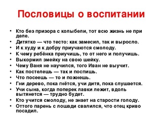 РУССКИЕ ПОСЛОВИЦЫ ПРО СВОЕВРЕМЕННОЕ ВОСПИТАНИЕ