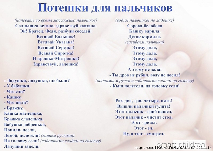 Потешки с движениями не только повышают настроение и позволяют ребенку совершать разнообразные двигательные действия, способствующие физическому развитию. Эти небольшие стихотворения: