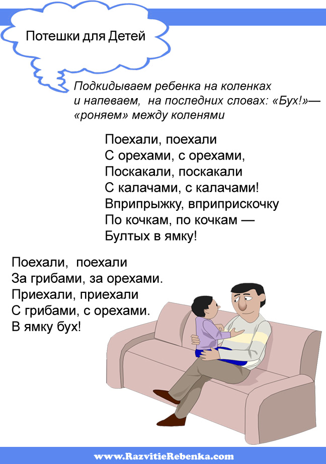 Вперед! (осторожно поднимите ребенка в воздух, поддерживая его голову и шею; дети постарше могут прыгать)