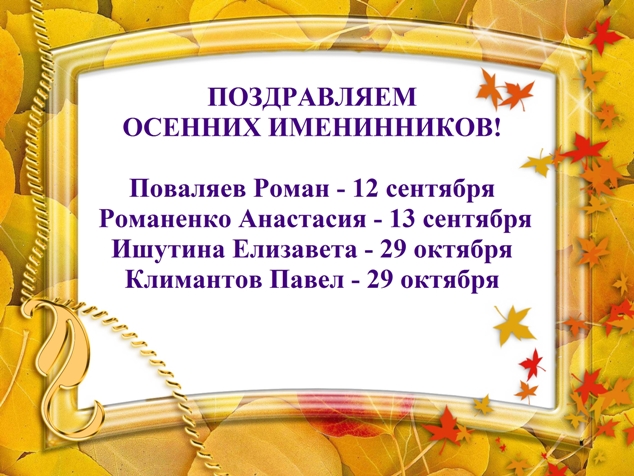 Ученик: Самый первый именинник осени тот, кто родился в сентябре. Вспомните пословицу «Холоден сентябрь, да сыт».
