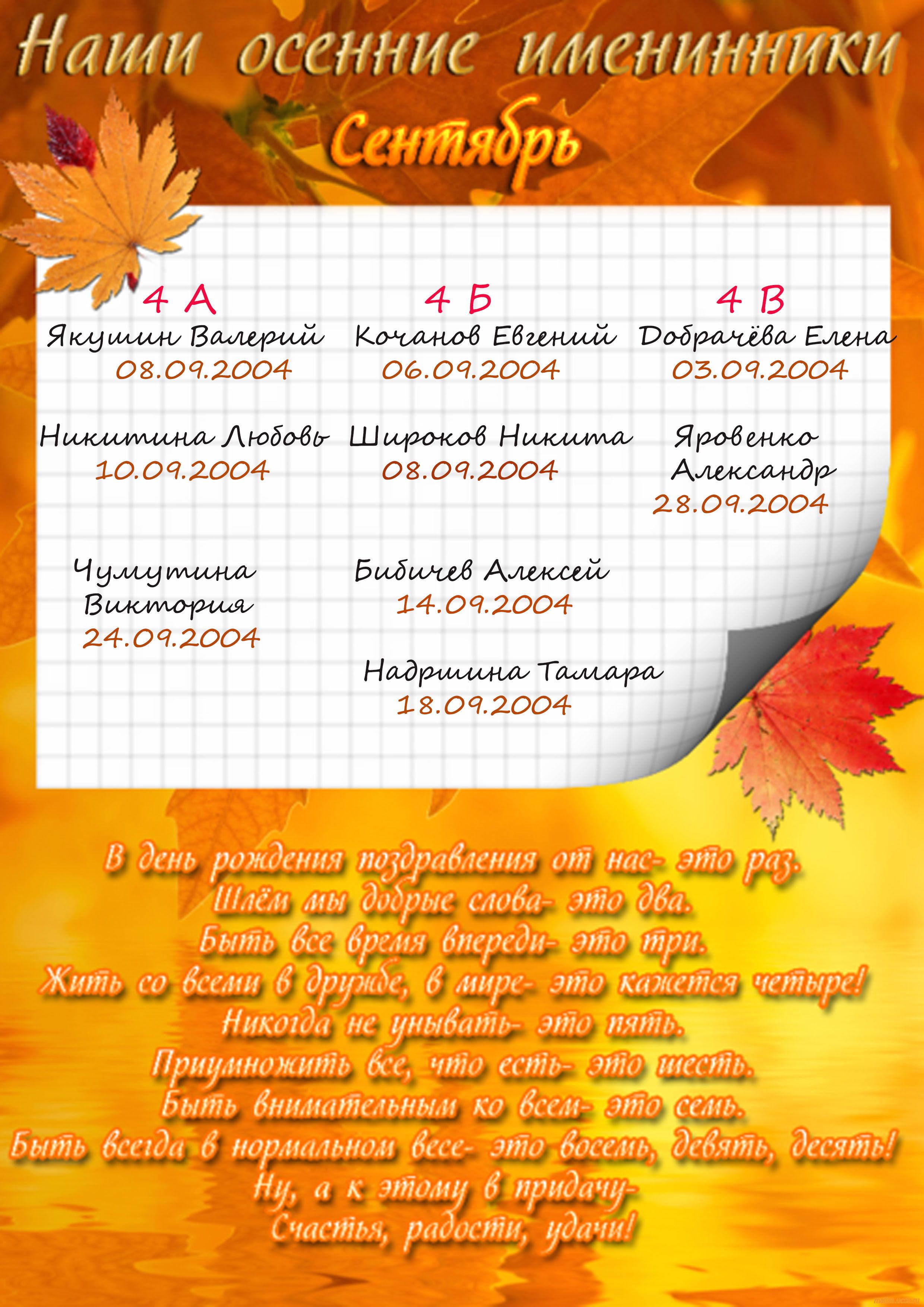 Цели: поздравить ребят, рождённых в летние и осенние месяцы;