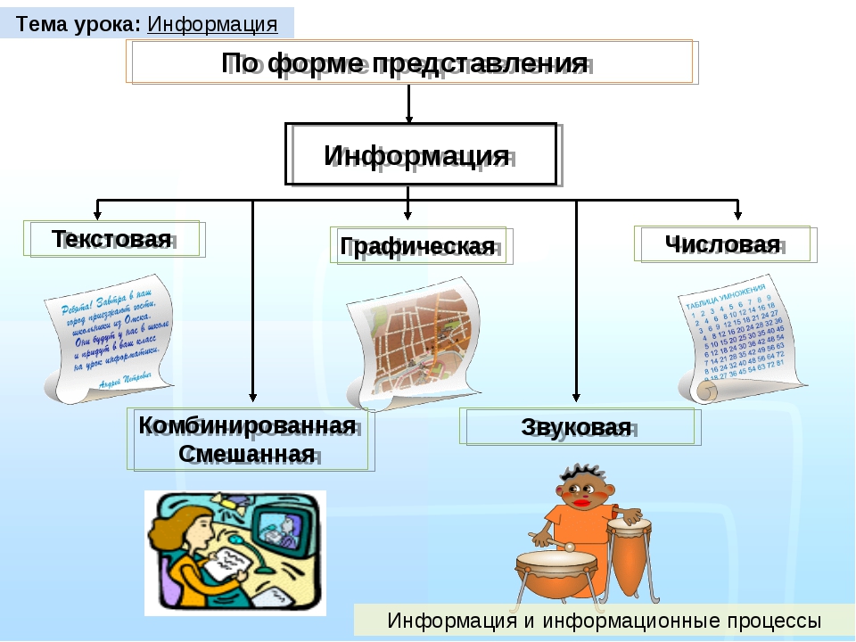ввести понятия о видах информации;