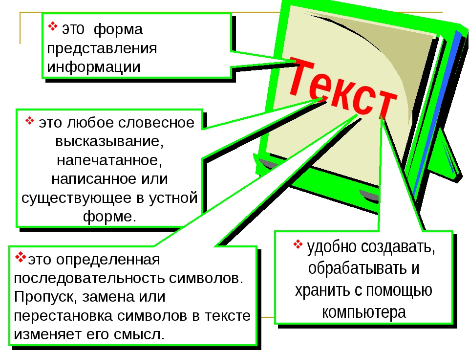 Представить информацию в виде устной речи текста,