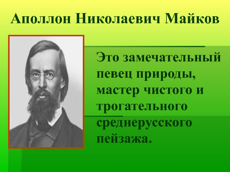 А.Н. Майков – русский поэт. Лучшие стихи поэта обращены к родной природе.