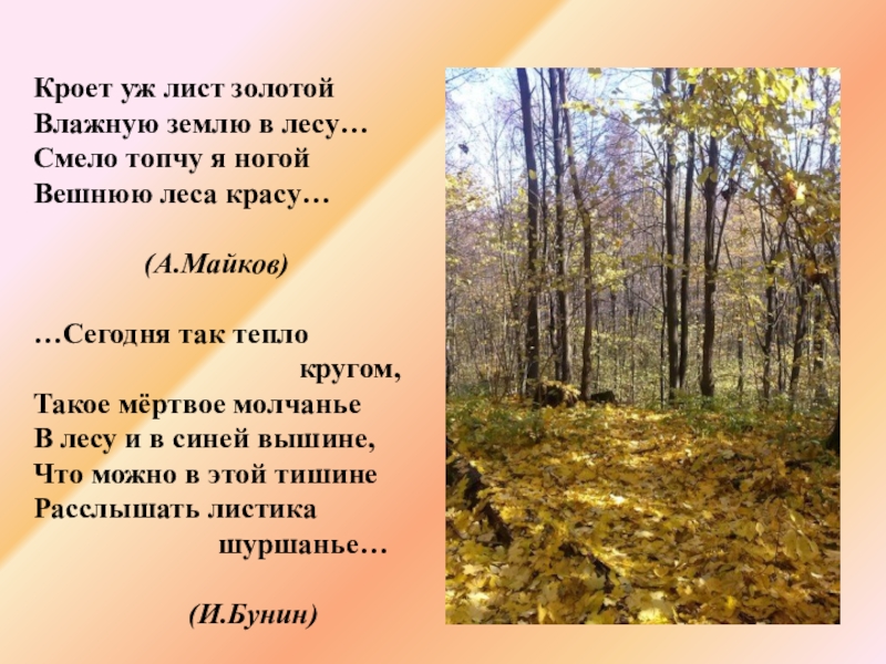 Афанасий Фет. Ф.Тютчев. Осень. Осенние листья. Федор Тютчев. Закружилась листва золотая. Буйные ветры. Пётр Ильич Чайковский. Пётр Ильич Чайковский. В.Поленов. Иван Бунин. Унылая пора. Сухие листья. Поздняя осень. А.С.Пушкин. Осень на реке Незнайке. Первые строки стихотворения. Заунывный ветер. Праздник осенних настроений. Золотая осень. Туча небо кроет. Стаи птиц. Пейзаж с хижиной.