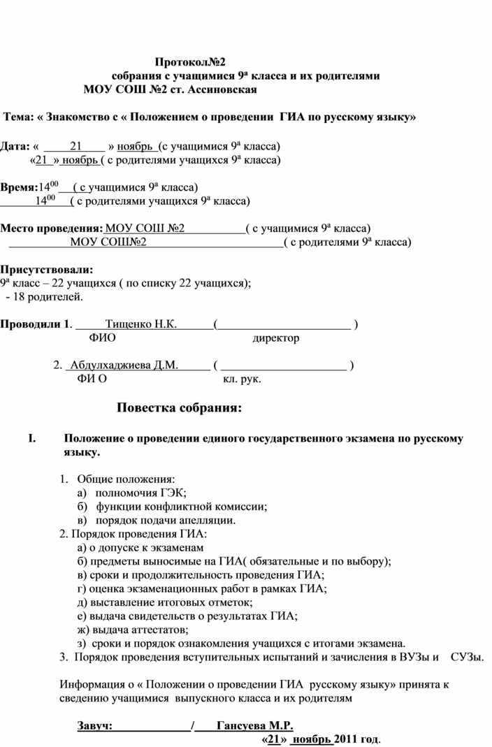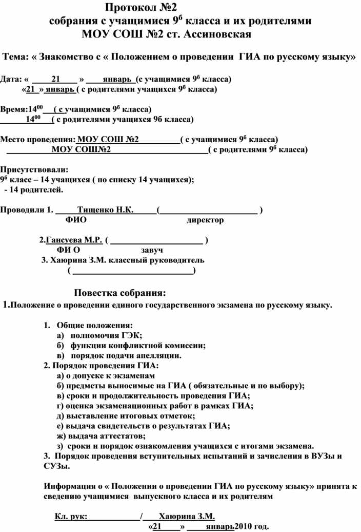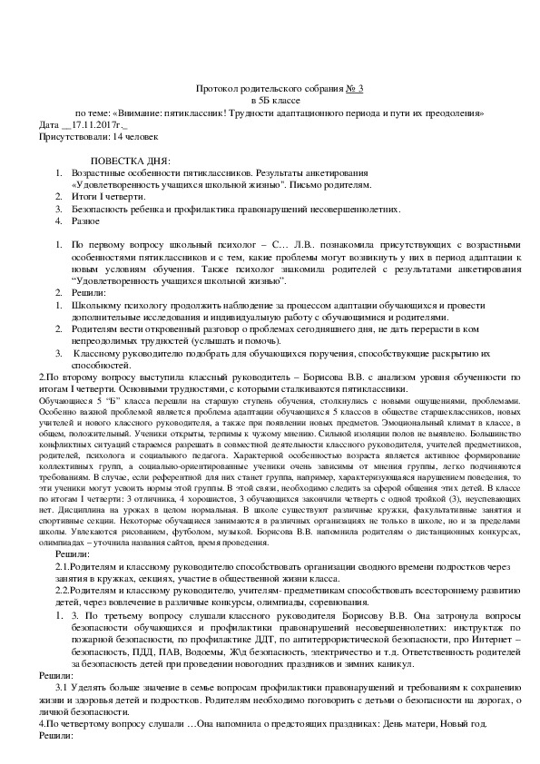 ПРОТОКОЛ РОДИТЕЛЬСКОГО СОБРАНИЯ №1
