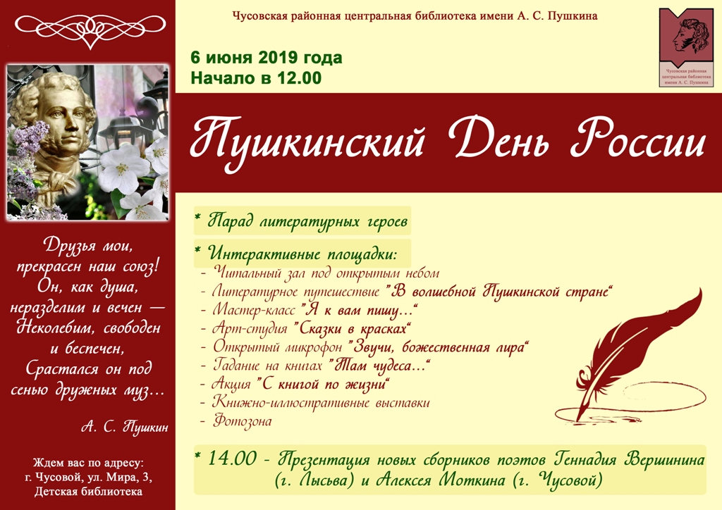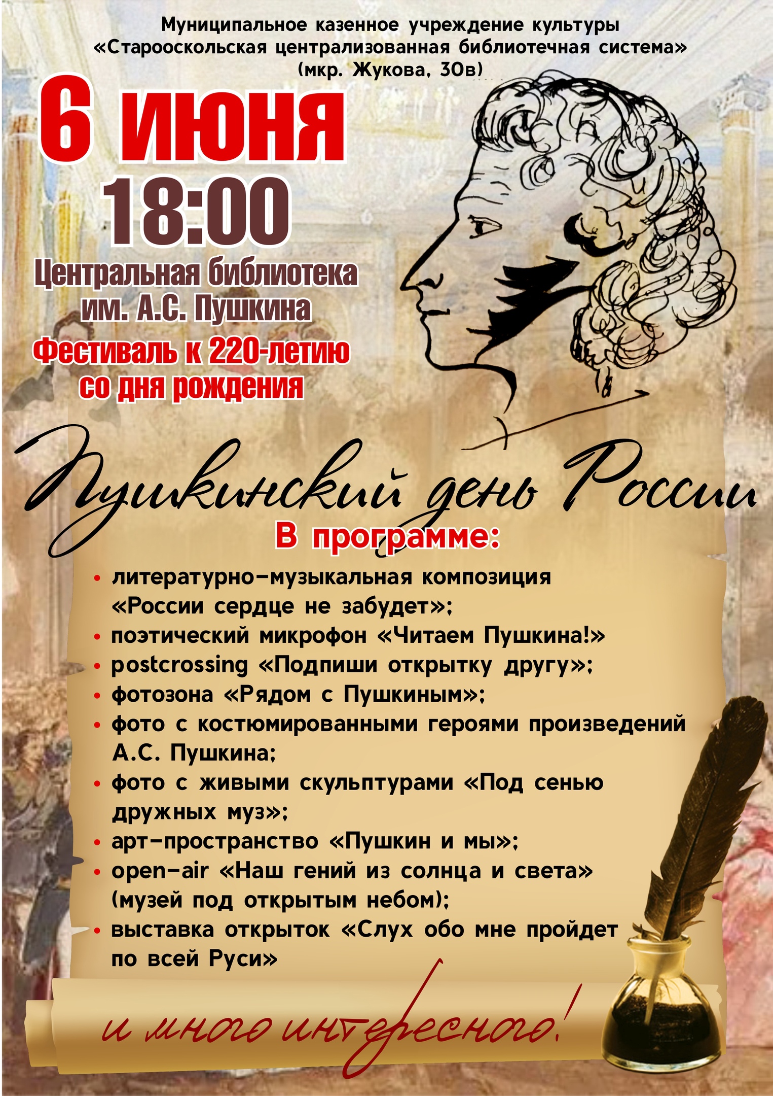 День Пушкина в библиотеке может посетить любой желающий принять участие в праздновании. Это действительно позволяет приобщиться к великой русской культуре и почувствовать русский язык и литературу.