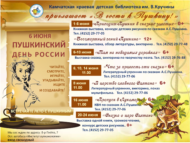 Пушкинский день по сценарию продолжит викторина. На проводимом в библиотеке детском мероприятии ребятам нужно будет по описанию портрета литературного персонажа назвать героя и произведение Пушкина, в котором он участвует.