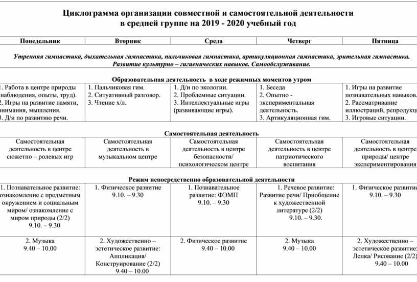 Планирование образовательной деятельности на 2019-2020уч.год