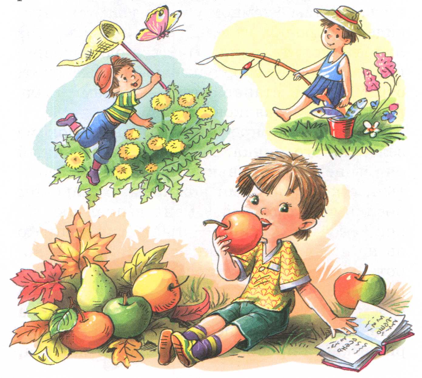 А осенью, когда настала пора собирать урожай в саду, Митя начал восторгаться этим чудным временем года. Теперь он хотел, чтобы и осень длилась вечно. Тогда отец достал свою записную книжку и показал сыну, что то же самое он говорил и о других временах года.