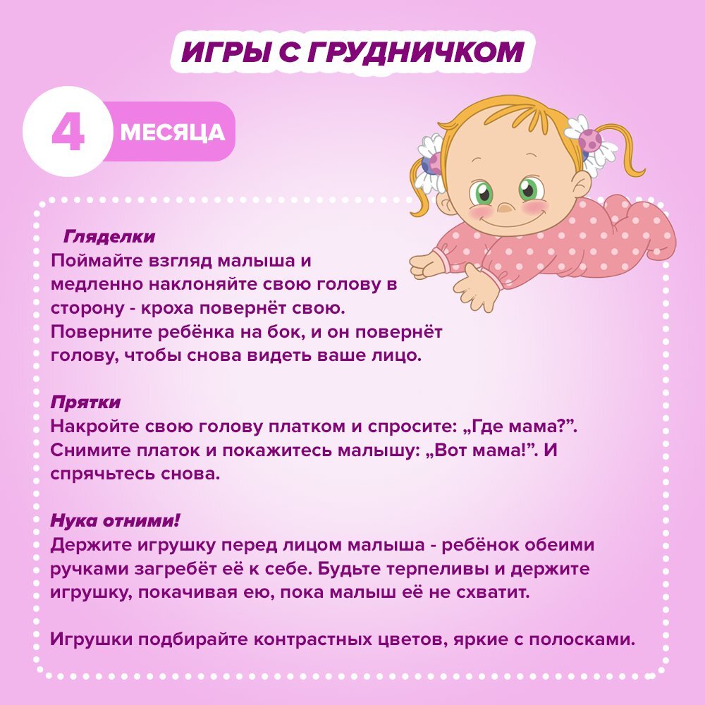 В 3 месяца с ребенком уже можно активно играть и заниматься. Полезные игры и упражнения: