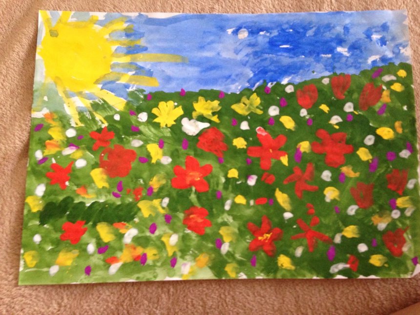 Оказывается, нитками можно рисовать. Воспитатель показывает готовый рисунок.