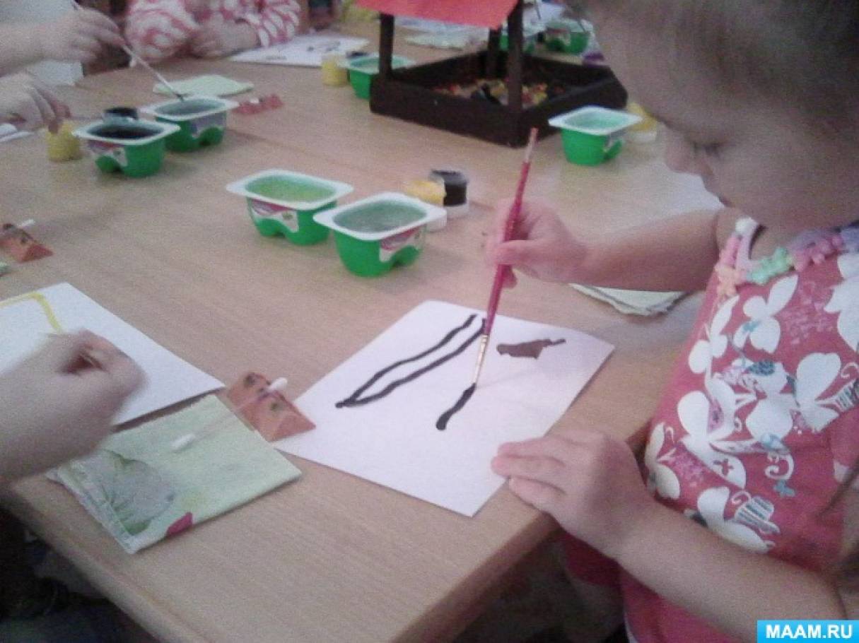 Цель. Формировать умение детей передавать образ цветка, его строение и форму используя кисточки и краски.