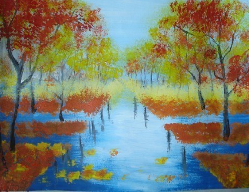 Какая прозрачная вода, она работает как зеркало. Так Красавица Осень смотрится в зеркало и наряжается, чтобы стать еще красивее.