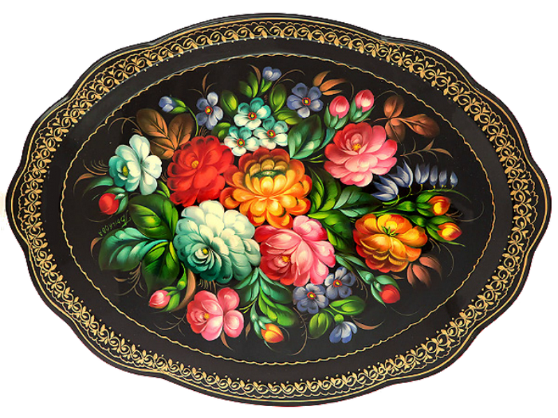 Жостовская роспись металлических подносов.