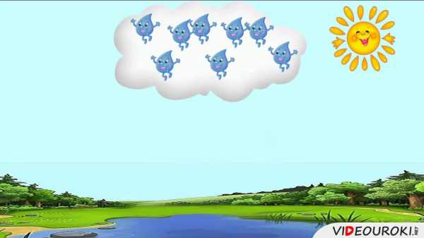 – Вот так и наша капелька нагрелась и поднялась вверх в виде пара. Переместите капельку на небо и положите на облако.