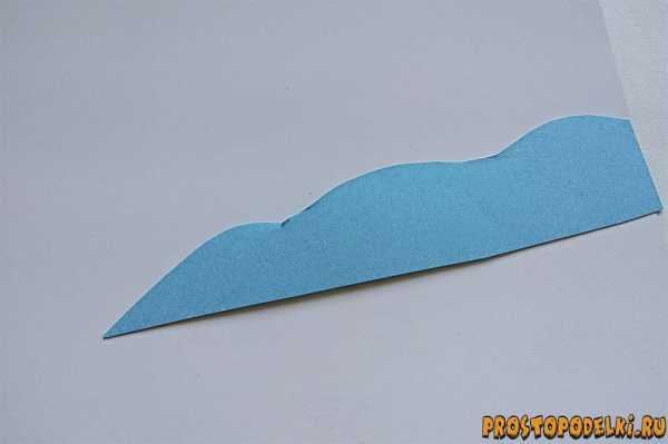 Чтобы показать испарение воды из водоема, необходимо сделать модель последнего. Подготовьте фон для аппликации, вырезав из белого плотного картона прямоугольник. Из голубого картона вырежьте деталь, форма которой с одной стороны волнообразная. Приклейте эту деталь в правый нижний угол картона, чтобы показать водоем, будь-то река, пруд или море.