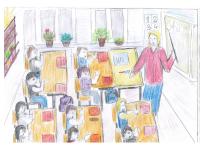 У нас есть свой классный кабинет. В нём много цветов! Мы с одноклассниками за ними ухаживаем. Ещё там есть большая классная доска, на ней мы решаем задачи, пишем предложения и рисуем. Потом после уроков дежурные убирают класс. Подметают пол, поливают цветы, а все им помогают. Потому что наш класс очень дружный! Ведь это самое главное.