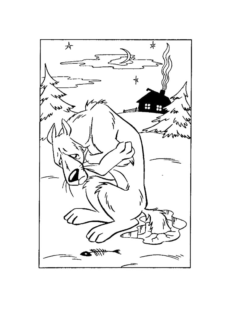 | Рисунок волка выполнен ручкой и цветными карандашами |