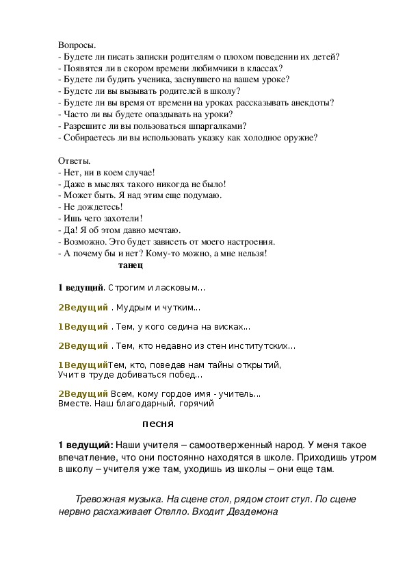 Ведущий 1. Я тоже очень беспокоюсь за наших учителей. Я даже делаю им на дни рождения подарки.