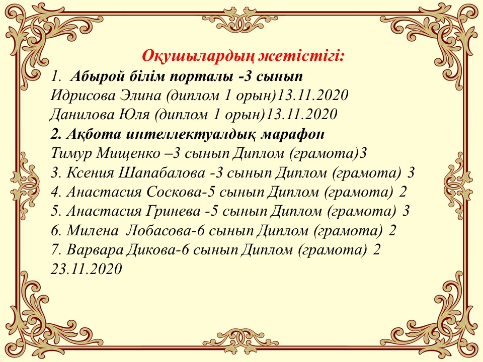 Құрметті ұстаздар, біз сіздер оқытып жүрген барлық пәндерді ардақтаймыз, сөздеріңді ықыласпен тыңдап, пән атауларына зер салып оқып үйреніп жүрміз. Жан – жақты білім бергені үшін ұстаздарымызға айтар алғысымыздың шегі жоқ.