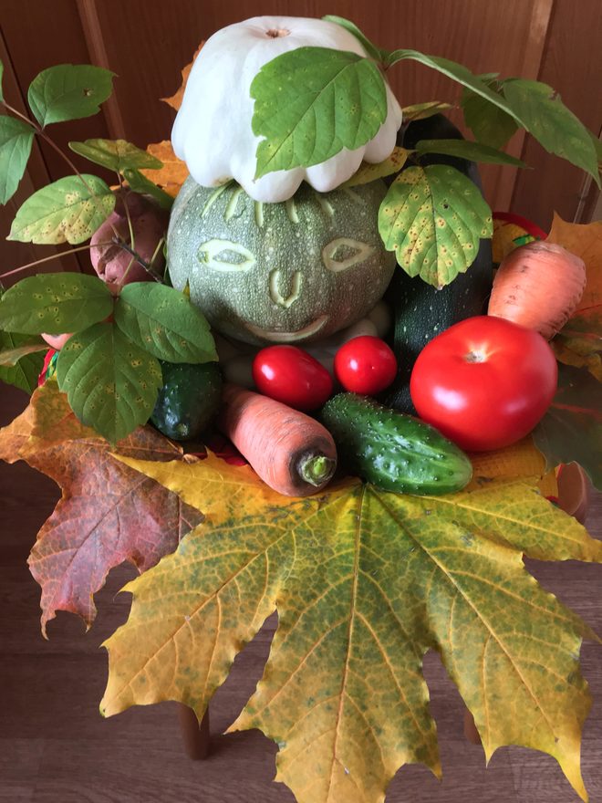 Овощи выходят на сцену, кланяются детям. Называют себя по именам.