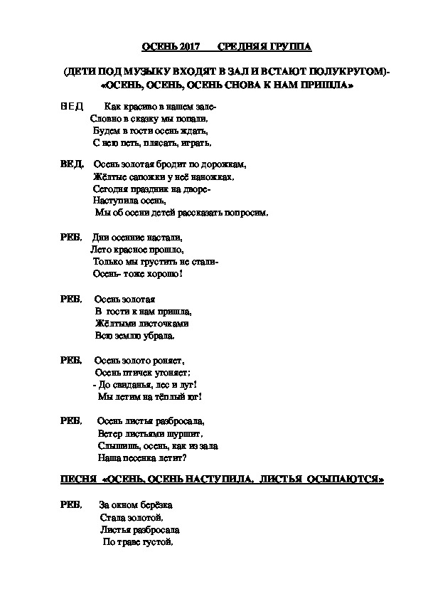 Песня «На дворе скучает Осень» исполняют все дети.