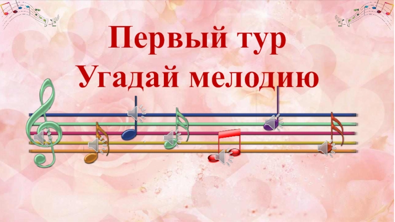 (жмут кнопку, заставка «Угадай мелодию», уходят в зал)