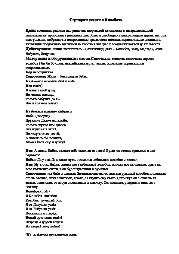 50% успеха зависит, естественно, от ведущего, читающего сказку, поэтому он должен помогать «артистам», делая акцент на некоторые слова или с помощью жестов.Подбадрирвать их, подсказывать и повторять фразы где потребуется.