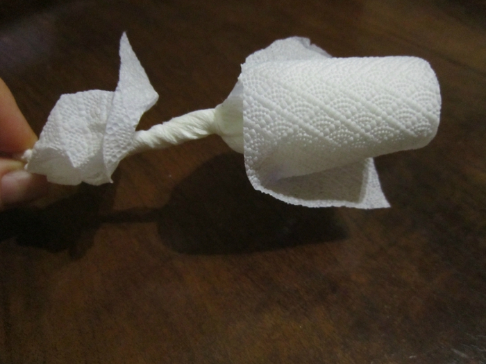 При сворачивании должен остаться небольшой «хвостик» от пленкиПионы прекрасны не только «живые», но и «салфеточные».