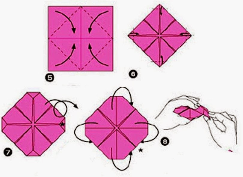 * Чтобы сформировать цветок согните бумагу как показано на картинке.