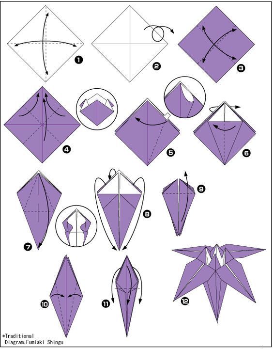 * Обратите внимание, что бумага в данном примере не является квадратной – это шестигранник. Можете воспользоваться ножницами, чтобы получить такую форму.