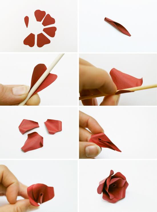 Существует несколько методов изготовления бумажных цветов. Ниже приведены инструкции с фото роз из разной бумаги.