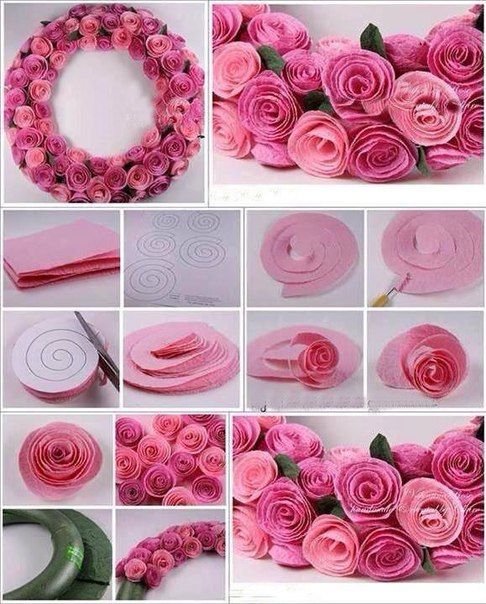 Из этих бумажных роз, сделанных своими руками, действительно можно сделать что угодно, но для целей этого урока они были превращены в красивый, красочный и недорогой венок.