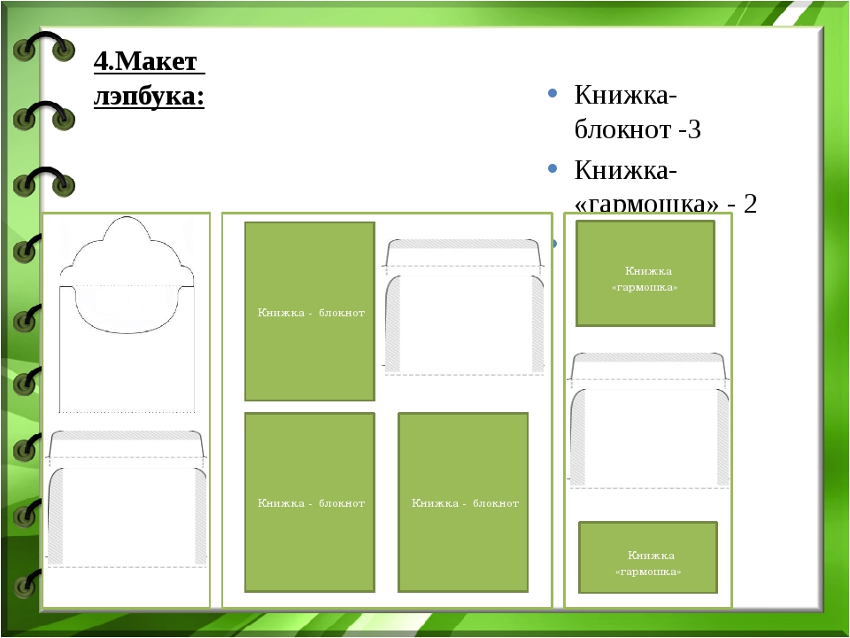 [Скачать] ШАБЛОНЫ ДЛЯ ЛЭПБУКА. Лэпбук (lapbook) – это самодельная книжка или папка, которая внутри содержит множество кармашков, книжек-раскладушек, конвертиков, окошек, дверок и других деталей. Все материалы лэпбука соответствуют определенной теме и несут в себе познавательную и развивающую функции. Чтобы сделать лэпбук, можно воспользоваться готовыми шаблонами или разработать детали самостоятельно.