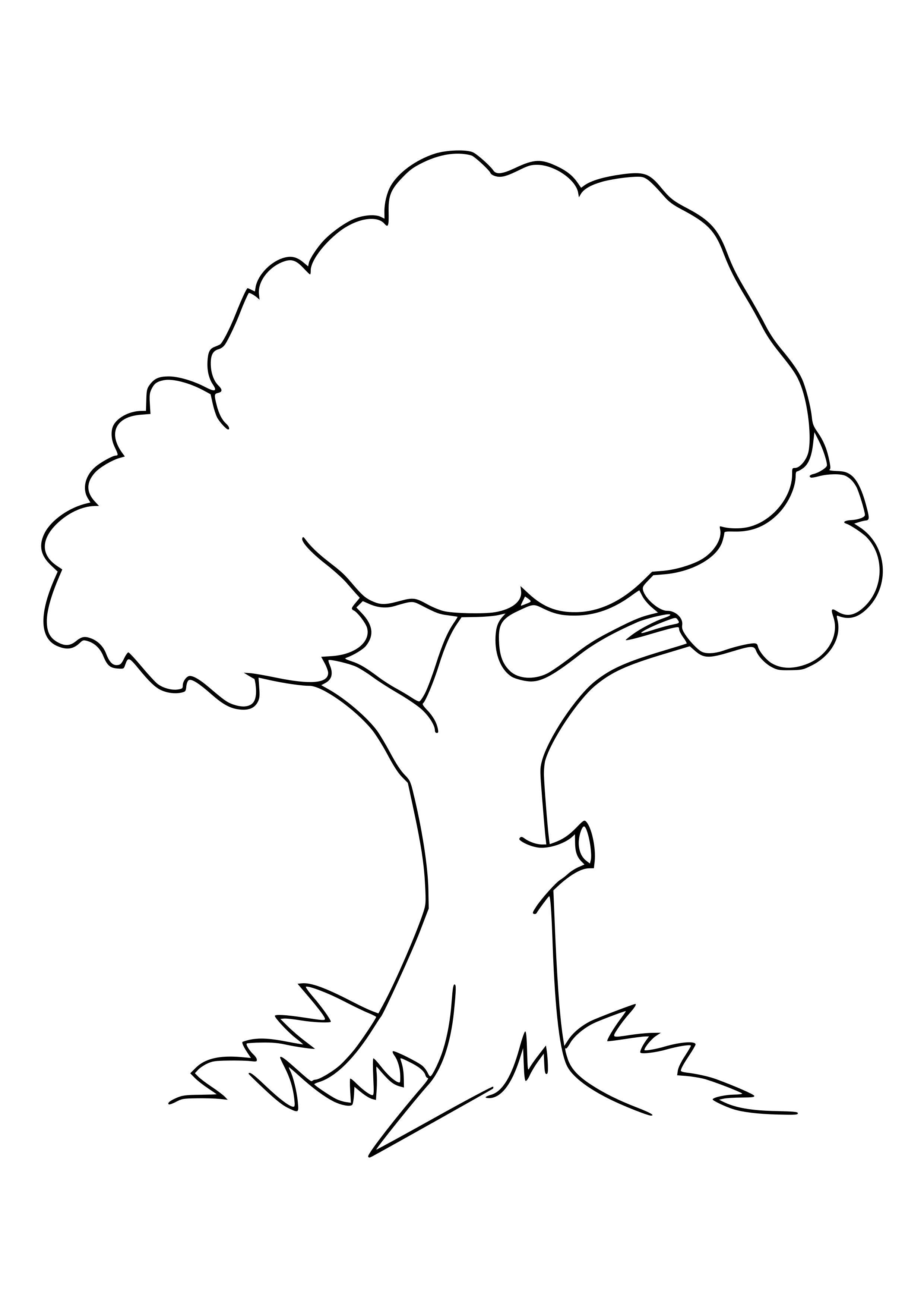 Раскраска красивое летнее дерево. Картинка подходит как шаблоны для вырезания элементов дерева из бумаги для детской аппликации.