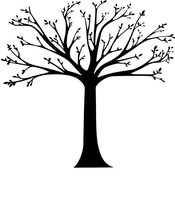 А вот несколько готовых шаблонов ствола дерева. Ветвистая структура вырезается из темной бумаги и работает как часть аппликации, которая накладывается сверху на крону дерева.