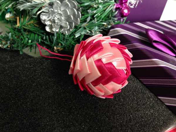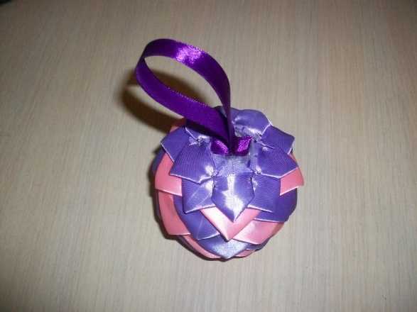 Шар готов! Вот такая елочная игрушка – шарик из атласных лент у меня получилась своими руками.