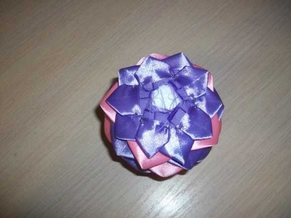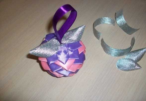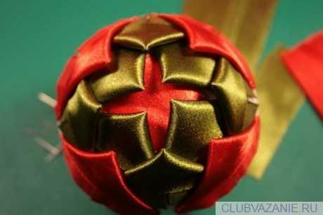 Мастер-класс с пошаговым фото по изготовлению новогоднего шара из атласных лент в стиле “артишок”