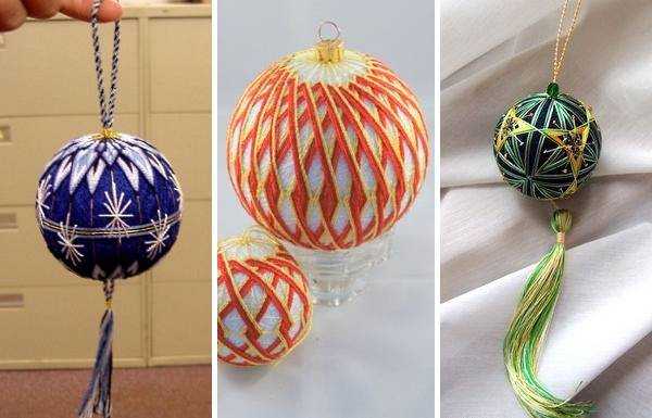 Наконец, вы можете своими руками создать потрясающие новогодние шары из тонких швейных ниток. Правда, процесс займет много времени, но вы только взгляните на новогодние шары из ниток на следующих фото! Это настоящее искусство, имя которому — темари. Предлагаем несколько идей и схем для начинающих.