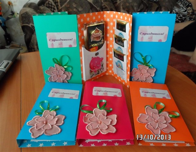 В подходящих ситуациях можно даже подготовить целый подарочный комплект из открытки и шоколадницы.