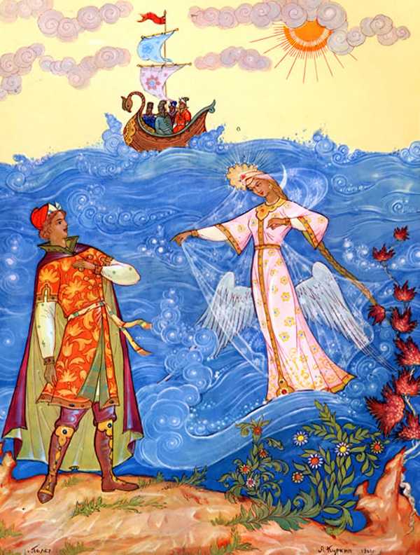 Героиня сказки А. С. Пушкина, прекрасная царевна Лебедь — поэтический образ прекрасной Девы из древнерусского фольклора, возникающей из глубины морских вод и белоснежной морской пены. На удивительной картине Михаила Александровича Врубеля Царевна Лебедь предстаёт перед нами в туманном, белокрылом одеянии утренней Царицы Зари-Зоряницы, величаво выплывающей из тьмы ночи или сияющей вечерней Царицы, уходящей в ночную тьму и бросающей свой прощальный взгляд, полный грусти и доброты.
