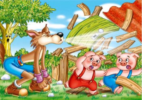 Это что за стог соломы? Я легко его разрушу! Вот только побольше наберу воздуха в легкие, да как дуну со всей силы! Вся ваша хлипкая халупа из соломы разлетится по сторонам.