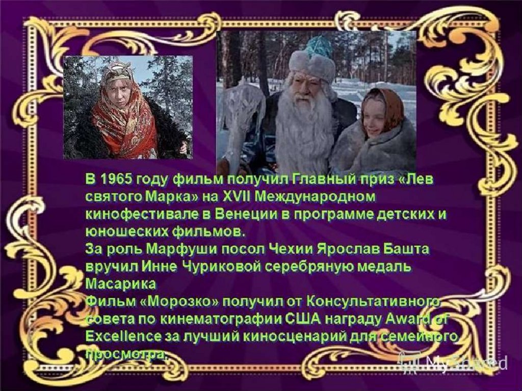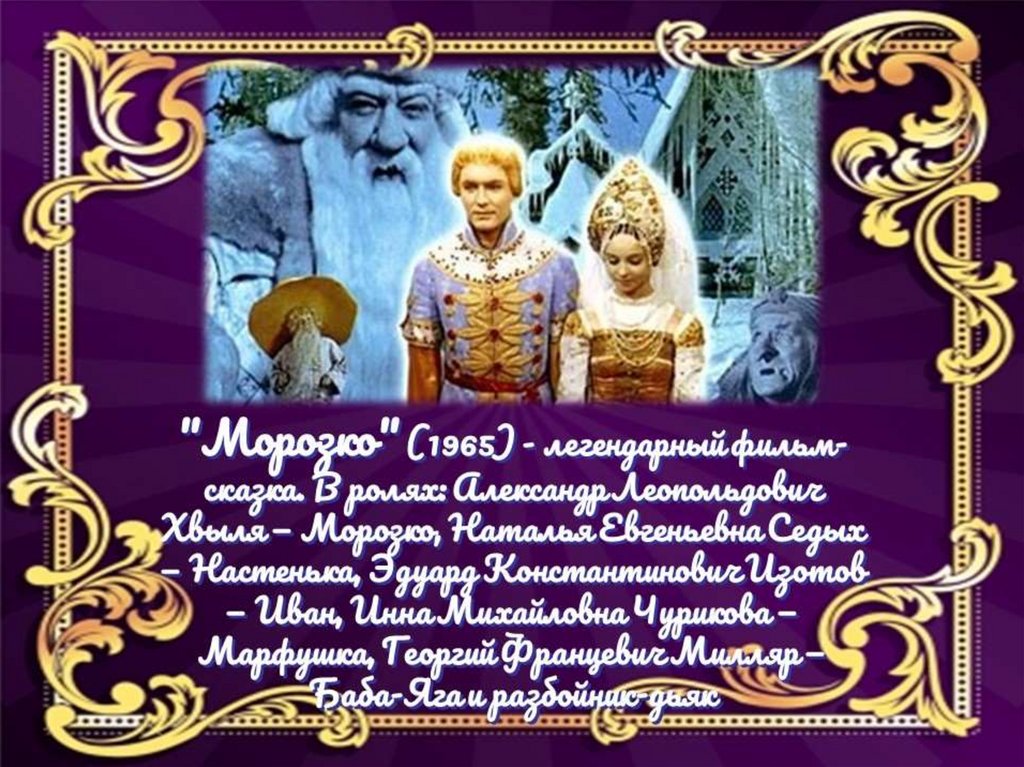 17 кинопремьер 2019 года, которые мы ждем с нетерпениемВ год Свиньи наших зрителей ожидает большое количество новых фильмов. Выбирайте, какие сюжеты вам больше по душе, — и вперед, за билетами! Ведь некоторые из этих фильмов выходят на экраны уже в первых числах январяОсновой для создания этой киносказки стала книга Виталия Губарева «Королевство кривых зеркал». Получилось милое и довольно захватывающее кино, – правда, в то же время назидательное и полное нравоучений для советских детей, в котором рассказывается о девочке Оле, попавшей в Зазеркалье и испытавшей множество опасных приключений потому, что не хотела слушаться бабушку. «Морозко» (1964 г.) Кадр из фильма «Морозко» (1964 г.)