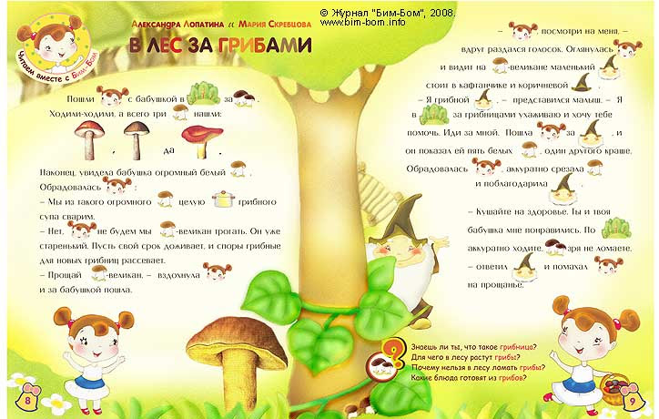 Образцы начала «Грибных сказок » :