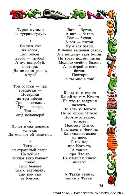 Эти сложновыговариваемые фразы учат правильно произносить слова, развивают дикцию и речь, слух, мышление, исправляют дефекты речи.
