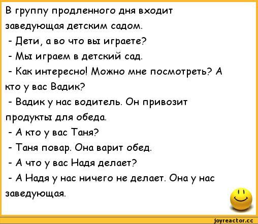 ВОСПИТАТЕЛЬ: А вот и вы, Марина Олеговна! Мне надо с вами серьезно поговорить